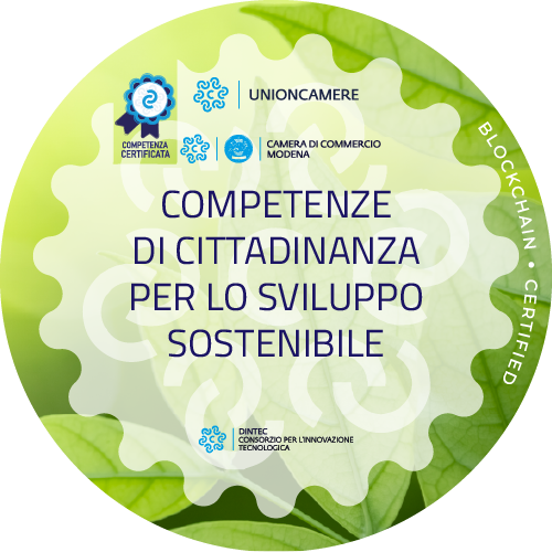 Competence badge rilasciato, tramite UNIONCAMERE, dalla Camera di Commercio di Modena con il supporto tecnico di DINTEC-Consorzio per l’innovazione tecnologica. La Camera di commercio di Modena, segue tutto l’iter progettuale, insieme ai partner. Gestisce il processo di certificazione e rilascia, dopo il parere favorevole di una Commissione terza di valutazione, il competence badge.