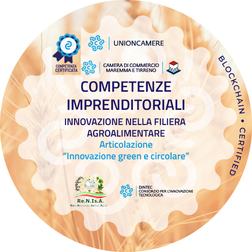 Competence badge rilasciato, tramite UNIONCAMERE, dalla Camera di Commercio di Industria Artigianato e Agricoltura della MAREMMA e del TIRRENO con il supporto tecnico di DINTEC-Consorzio per l’innovazione tecnologica. La Camera di commercio Industria Artigianato e Agricoltura della MAREMMA e del TIRRENO, segue tutto l’iter progettuale, insieme ai partner. Gestisce il processo di certificazione e rilascia, dopo il parere favorevole di una Commissione terza di valutazione, il competence badge.