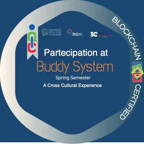Il Digital Badge "Buddy System Unisa" è un riconoscimento unico ed esclusivo, progettato per celebrare e attestare la partecipazione attiva al programma Buddy System dell'Università degli Studi di Salerno. Questo programma innovativo si dedica a migliorare l'esperienza degli studenti internazionali, facilitando la loro integrazione nella nuova città e università attraverso la guida di studenti locali, detti buddies. Questi ultimi sono accuratamente selezionati per assistere gli studenti internazionali, fornendo supporto in situazioni quotidiane e contribuendo a superare eventuali sfide culturali e sociali.