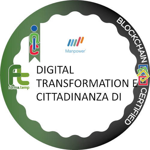 Ottiene questo badge chi partecipa al corso DIGITAL TRANSFORMATION E CITTADINANZA DIGITALE. Chi ottiene questo badge dimostra interesse sulle tematiche relative alla trasformazione digitale e sulle modalità conseguenziali nell'impatto sulla vita quotidiana professionale e personale: l'impatto del digitale nelle organizzazioni; la Cittadinanza Digitale; Sicurezza informatica e Digitale. Come muoversi in un contesto di trasformazione digitale.