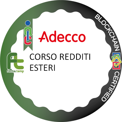Ottiene questo badge chi partecipa a CORSO REDDITI ESTERI. Chi ottiene questo badge dimostra interesse in REDDITI ESTERI.