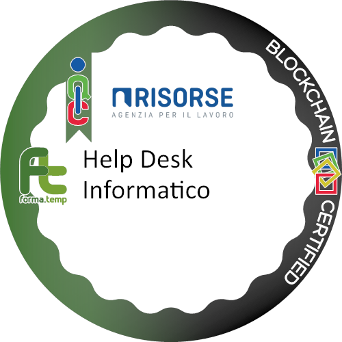 Ottiene questo badge chi partecipa a Help Desk Informatico. Chi ottiene questo badge dimostra di aver acquisito conoscenze e competenze teorico – pratiche per poter fornire agli utenti assistenza e supporto tecnico per la risoluzione di problemi relativi a servizi informatici, nell’ambito di qualsiasi contesto aziendale