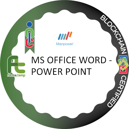 "Ottiene questo badge chi partecipa al corso MS OFFICE WORD - POWER POINT. Chi ottiene questo badge dimostra interesse nel saper elaborare testi e presentazioni multimediali semplici ma efficaci attraverso la conoscenza dei principali software di videoscrittura: funzioni e utilizzo; Introduzione al word processing; Software per il word processing; Caratteristiche del carattere (formattazione); Caratteristiche del paragrafo; Caratteristiche del documento di testo; preparazione della stampa; stampa unione. Svilupperà anche capacità di elaborazione di presentazioni multimediali: testi, immagini, grafici ed oggetti, effetti speciali, preparazione della stampa."
