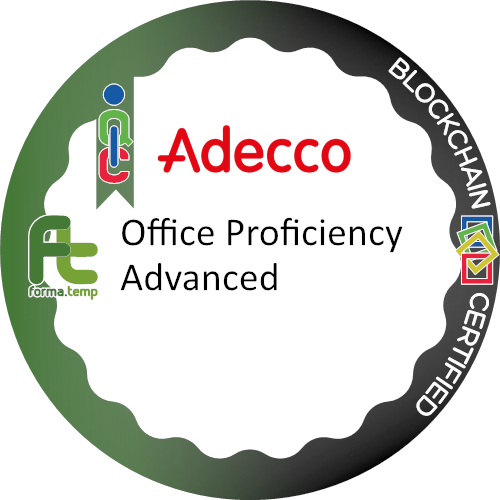 Ottiene questo badge chi partecipa a Office Proficiency Advanced . Chi ottiene questo badge dimostra interesse in Utilizzare in modo produttivo Word, Excel, Power Point e le Online Collaboration cioè le competenze per interagire con gli strumenti Office nel web e migliorare la comunicazione e collaborazione online con colleghi e clienti.