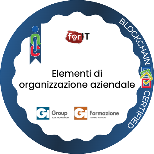 Il digital badge "Elementi di organizzazione aziendale" attesta l’acquisizione di competenze di base legate alla gestione e all’organizzazione delle attività d’impresa. Il partecipante ha sviluppato la capacità di comprendere e applicare i principali modelli organizzativi, utilizzando strumenti utili per analizzare e progettare processi gestionali e amministrativi nel contesto aziendale.