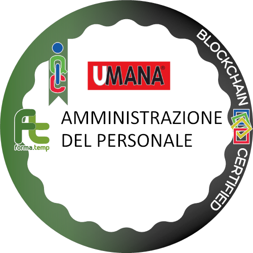 Il proprietario di questo Badge ha partecipato ad un percorso formativo, promosso da Umana Spa e realizzato da Umana Forma Srl in collaborazione con ForIt società cooperativa a R.L. attraverso il finanziamento del Fondo Forma.Temp, finalizzato a fornire ai discenti strumenti utili per introdurre i discenti all’amministrazione del personale.