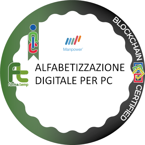 Ottiene questo badge chi partecipa al corso ALFABETIZZAZIONE DIGITALE PER PC. Chi ottiene questo badge dimostra interesse su come poter navigare, ricercare e filtrare le informazioni e contenuti digitali: valutare dati, informazioni e contenuti digitali; gestire dati, informazioni e contenuti digitali; interagire con gli altri attraverso le tecnologie digitali; condividere informazioni attraverso le tecnologie digitali; esercitare la cittadinanza attraverso le tecnologie digitali; netiquette; gestire l’identità digitale; proteggere i dispositivi; proteggere i dati personali e la privacy