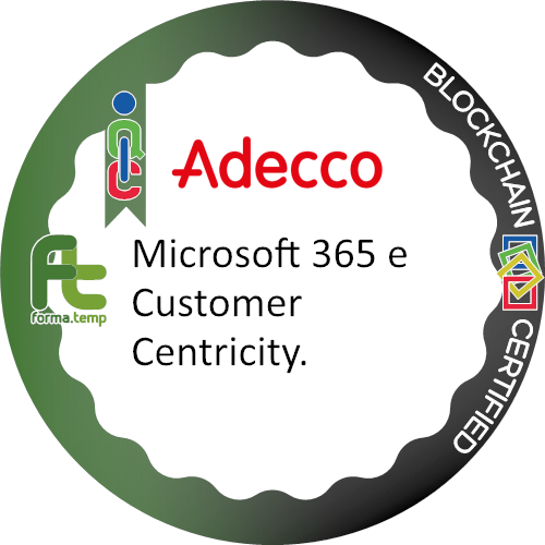 Ottiene questo badge chi partecipa al corso per aumentare la produttività con gli strumenti di Microsoft 365 e Customer Centricity. Chi ottiene questo badge dimostra interesse in Microsoft 365 e CUSTOMER CENTRICITY.