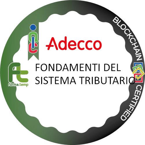 Ottiene questo badge chi partecipa a PRESELEZIONE: CONOSCERE I FONDAMENTI DEL SISTEMA TRIBUTARIO ITALIANO Chi ottiene questo badge dimostra interesse in PRESENTAZIONE SOCIETA' IL SISTEMA TRIBUTARIO ITALIANO GLI IMMOBILI REDDITI DI LAVORO DIPENDENTE e LAVORO AUTONOMO, LE DETRAZIONI,LA MODULISTICA E GLI ONERI IL RISULTATO DELLA DICHIARAZIONE DIRITTI E DOVERI SICUREZZA GENERALE