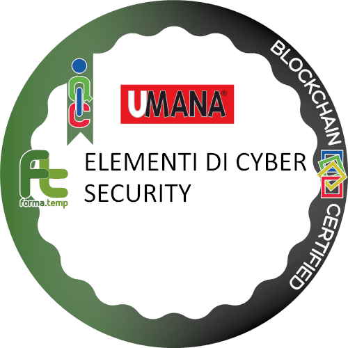 Il proprietario di questo Badge ha partecipato ad un percorso formativo, promosso da Umana Spa e realizzato da Umana Forma Srl in collaborazione con ForIt società cooperativa a R.L. attraverso il finanziamento del Fondo Forma.Temp, finalizzato a fornire ai discenti strumenti utili per approcciarsi consapevolmente al mondo della Cyber Security.