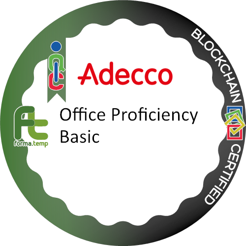Ottiene questo badge chi partecipa a Office Proficiency Basic Chi ottiene questo badge dimostra interesse in Utilizzare in modo produttivo Word, Excel, Power Point e le Online Essentials cioè le competenze necessarie per comprendere i concetti principali in materia di navigazione web e di sicurezza online.