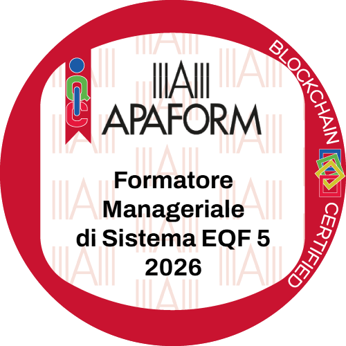 Ottiene questo badge chi matura un’esperienza professionale di formatore manageriale di sistema per un periodo non inferiore a 4 anni in un ambito di riconoscimento nazionale e internazionale ed è in possesso dei requisiti prescritti da Apaform, specificati nel relativo regolamento professionale. Questa qualificazione APAFORM è in linea con quanto previsto dalla PdR UNI-Fondimpresa 116:2021 e dal Regolamento Istitutivo del Sistema di Qualificazione dei Soggetti Proponenti Conto di Sistema Fondimpresa 2025-2028 e ricopre i profili professionali: Responsabile del processo di analisi e definizione dei fabbisogni, Responsabile del processo di progettazione e Responsabile del processo di erogazione dei servizi.