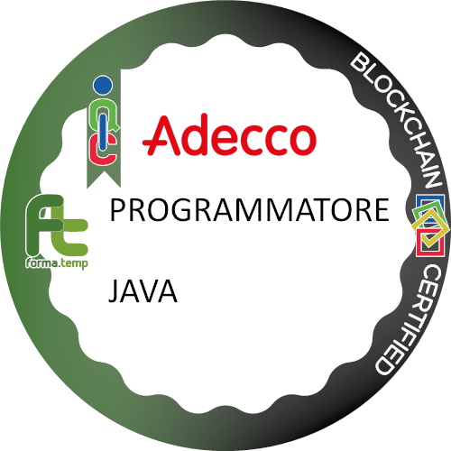 Ottiene questo badge chi partecipa a PROGRAMMATORE JAVA. Chi ottiene questo badge dimostra interesse nell'acquisire competenze sia tecniche che pratiche nella programmazione informatica