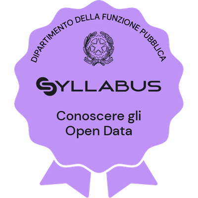 I dipendenti pubblici che hanno acquisito l‘Open Badge “Conoscere gli Open Data” hanno completato il percorso formativo, erogato attraverso la piattaforma Syllabus, che mira a rafforzare: la conoscenza delle caratteristiche degli Open Data; la capacità di individuare quali obiettivi si possono soddisfare con la messa a disposizione di Open Data comprendendone i vantaggi per le amministrazioni, i cittadini e le imprese. Il percorso “Conoscere gli Open Data” è parte del programma formativo “Competenze digitali per la PA” , che mira a rafforzare le competenze digitali comuni a tutti i dipendenti pubblici al fine di accrescere la propensione complessiva al cambiamento e all’innovazione nella pubblica amministrazione. Il programma è messo a disposizione gratuitamente dal Dipartimento della funzione pubblica della Presidenza del Consiglio dei ministri. Il programma si basa sul Syllabus “Competenze digitali per la PA” che si compone di 11 competenze organizzate in 5 aree tematiche; ciascuna competenza, a sua volta, si articola in un numero variabile di conoscenze/abilità raggruppate secondo tre livelli di padronanza (base, intermedio e avanzato). “Conoscere gli Open Data” è una delle 11 competenze previste nel programma “Competenze digitali per la PA” . Il dipendente pubblico che ha conseguito il Badge ha partecipato al percorso formativo personalizzato in funzione della rilevazione dell’effettivo fabbisogno di competenze individuale ed ha superato con successo il test di verifica delle competenze acquisite, relativo al livello di padronanza più elevato (avanzato).