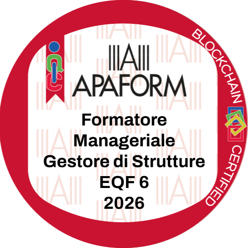 Ottiene questo badge chi matura un’esperienza professionale di formatore manageriale gestore di strutture per un periodo non inferiore a 6 anni ed è in possesso dei requisiti prescritti da Apaform, specificati nel relativo regolamento professionale. L’esperienza deve essere maturata e attiva negli ultimi sei anni antecedenti la presentazione della domanda. Questa qualificazione APAFORM è in linea con quanto previsto dalla PdR UNI-Fondimpresa 116:2021 e dal Regolamento Istitutivo del Sistema di Qualificazione dei Soggetti Proponenti Conto di Sistema Fondimpresa 2025-2028 e ricopre i profili professionali: Responsabile del processo di direzione e Responsabile del processo di gestione economico-amministrativa.
