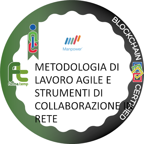 Ottiene questo badge chi partecipa al corso METODOLOGIA DI LAVORO AGILE E STRUMENTI DI COLLABORAZIONE IN RETE. Chi ottiene questo badge dimostra interesse nell'apprendere le modalità di un corretto approccio alla metodologia del lavoro Agile: cambiamenti organizzativi e la loro gestione, le resistenze, vincoli e strategie aziendali; capacità realizzativa in network; spazio fisico e spazio virtuale; L’equilibrio tra vita lavorativa e personale; La gestione del rischio stress nello smart working; Le tecnologie, le competenze che richiedono, le strutture, le piattaforme, strumenti collaborativi, videoconferenze, cloud, social network; fondamenti ICT; Cloud Computing; collaborazione online: scaricare software e plugin, impostazione delle funzioni comuni.