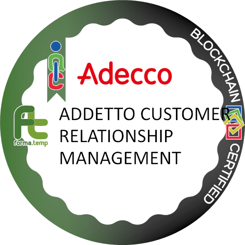 Ottiene questo badge chi partecipa a ADDETTO CUSTOMER RELATIONSHIP MANAGEMENT Chi ottiene questo badge dimostra interesse in GESTIONE DELLA CLIENTELA E DELLA CHIAMATA GESTIONE DEL PC, PACCHETTO OFFICE.
