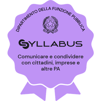 I dipendenti pubblici che hanno acquisito l‘Open Badge “Comunicare e condividere con cittadini, imprese ed altre PA” hanno completato il percorso formativo, erogato attraverso la piattaforma Syllabus, che mira a rafforzare: l’individuazione degli strumenti digitali e dello stile di comunicazione più appropriati in funzione dei diversi messaggi e contenuti da veicolare, al fine di interagire appropriatamente con le altre amministrazioni e, soprattutto, di attivare una comunicazione pubblica e forme di partecipazione efficaci in favore di cittadini e imprese; il riconoscimento del valore attribuito alle comunicazioni trasmesse a mezzo PEC nei confronti di cittadini e imprese e le modalità per inoltrare validamente istanze e dichiarazioni per via telematica; la conoscenza circa le implicazioni operative dell’obbligo di acquisire d’ufficio le informazioni già in possesso dall’amministrazione e del domicilio digitale di cittadini, professionisti e imprese. Il percorso “Comunicare e condividere con cittadini, imprese ed altre PA” è parte del programma formativo “Competenze digitali per la PA” , che mira a rafforzare le competenze digitali comuni a tutti i dipendenti pubblici al fine di accrescere la propensione complessiva al cambiamento e all’innovazione nella pubblica amministrazione. Il programma è messo a disposizione gratuitamente dal Dipartimento della funzione pubblica della Presidenza del Consiglio dei ministri. Il programma si basa sul Syllabus “Competenze digitali per la PA” che si compone di 11 competenze organizzate in 5 aree tematiche; ciascuna competenza, a sua volta, si articola in un numero variabile di conoscenze/abilità raggruppate secondo tre livelli di padronanza (base, intermedio e avanzato). “Comunicare e condividere con cittadini, imprese ed altre PA” è una delle 11 competenze previste nel programma “Competenze digitali per la PA” . Il dipendente pubblico che ha conseguito il Badge ha partecipato al percorso formativo personalizzato in funzione della rilevazione dell’effettivo fabbisogno di competenze individuale ed ha superato con successo il test di verifica delle competenze acquisite, relativo al livello di padronanza più elevato (avanzato).
